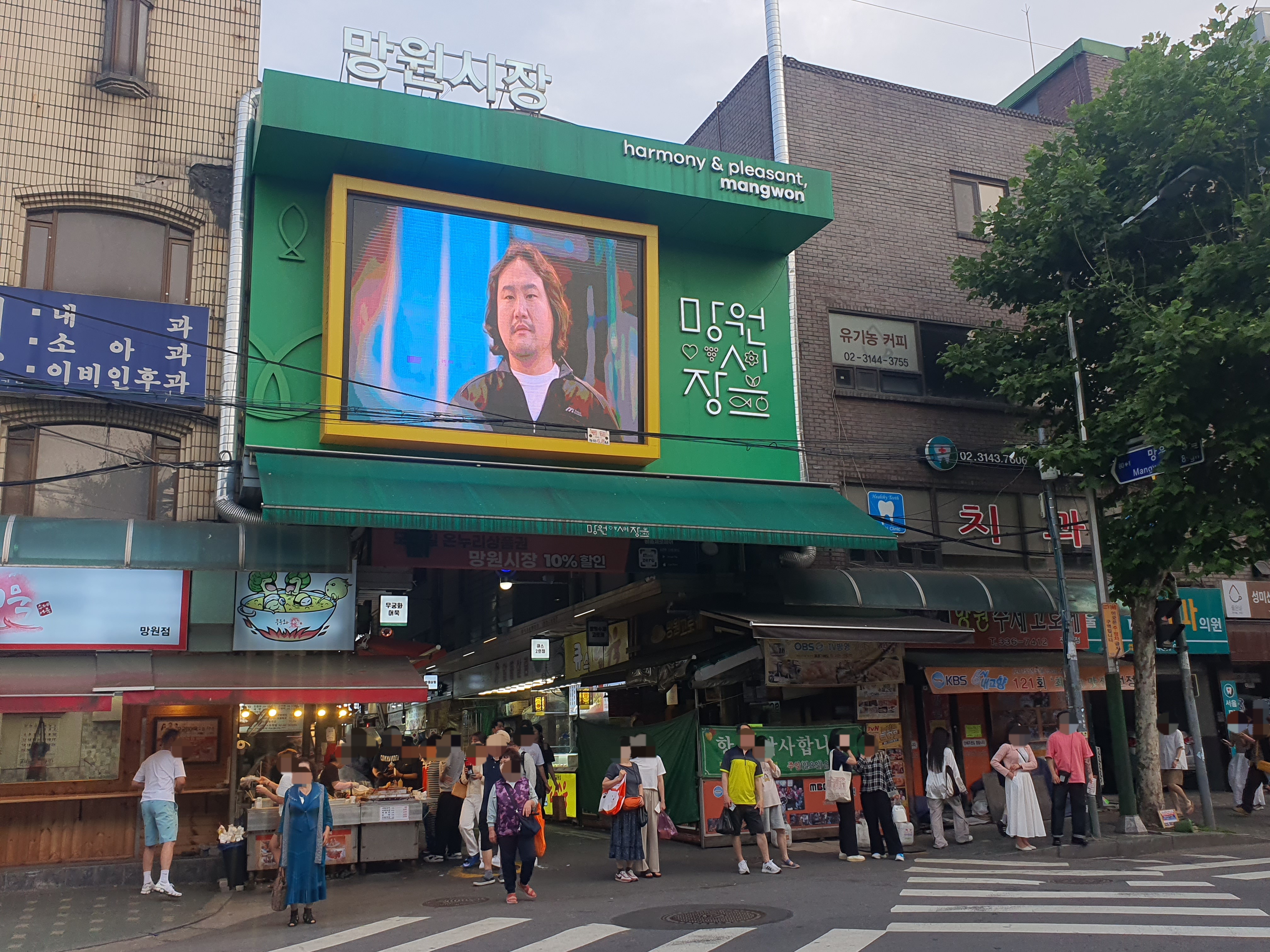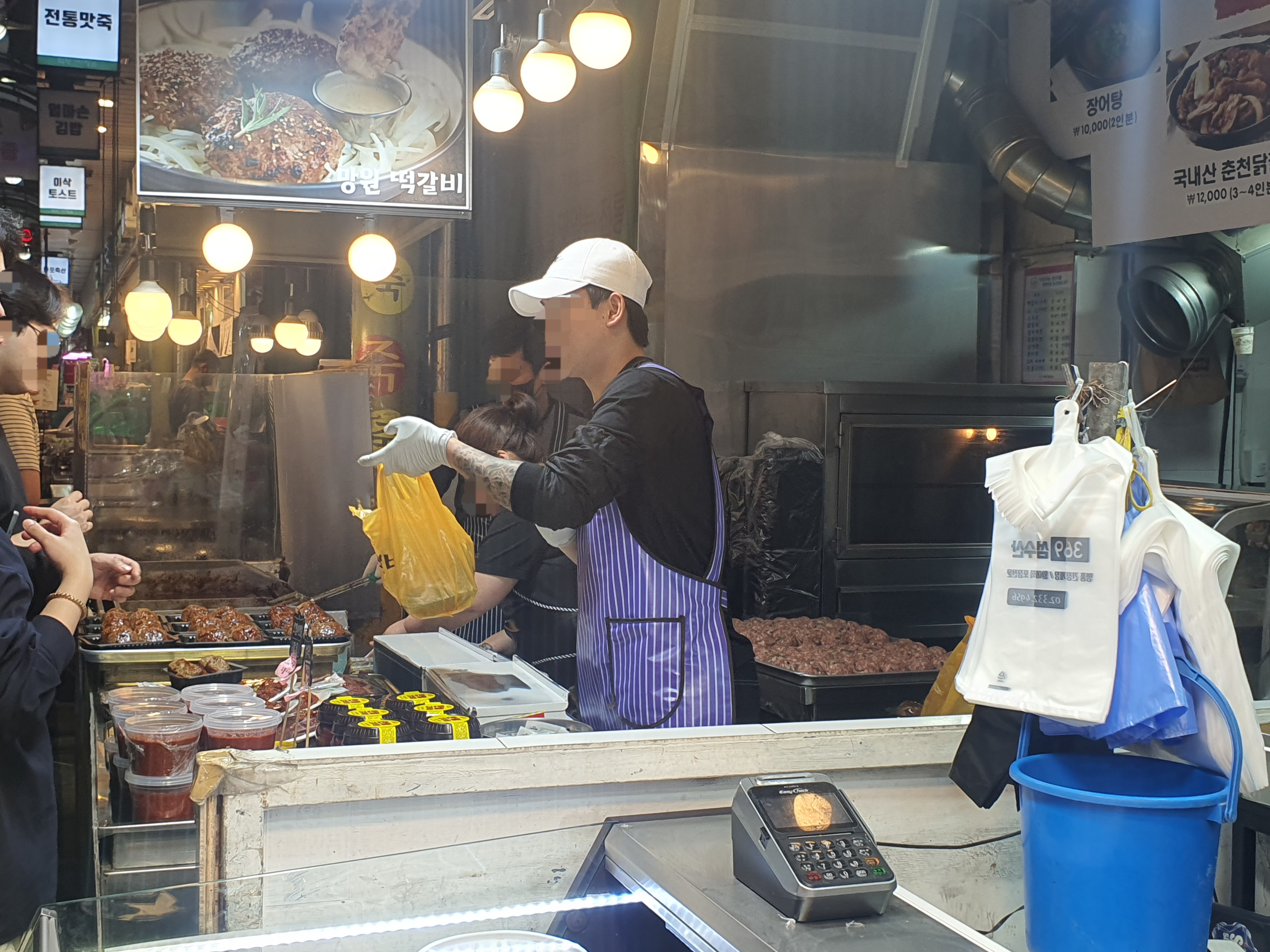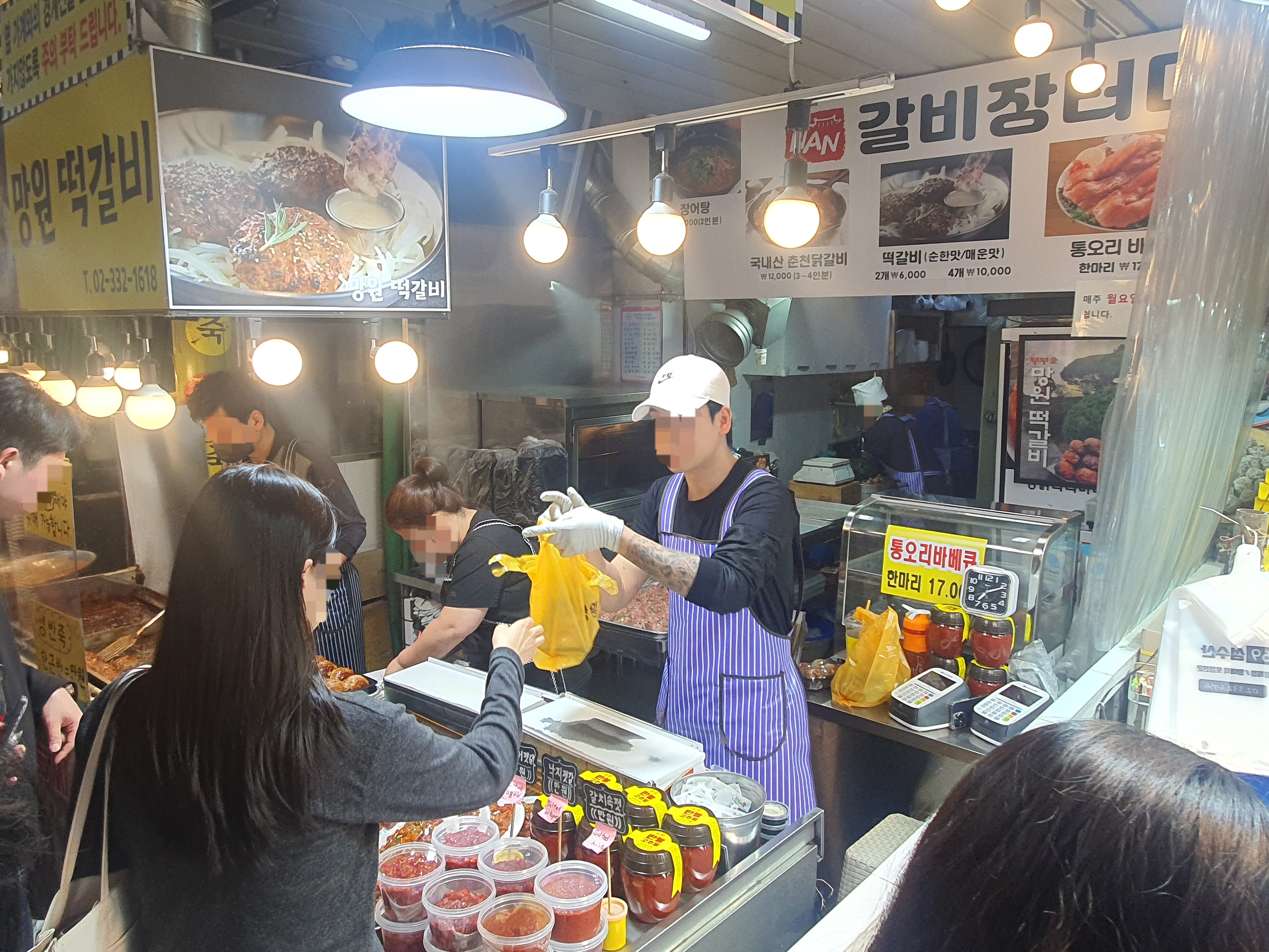 망원시장에는 젊은이들이 좋아하는 닭강정, 튀김, 분식, 떡갈비, 적당히 세련된 포차 등이 즐비했다. 다른 시장들이 50대 이상을 타겟으로 하는 생물을 판매할 때 망원시장은 채소나 생선, 고기 등 재료뿐만 아니라 시장 그 자체에서 즐길 수 있는 먹거리들을 개발하여 젊은이들의 발걸음을 멈추게 하고 있었다. 또한 망원시장 근처 상권도 한 몫 하고 있었는데, 일명 '망리단길'이라는 힙한 골목길이 있었기에 시장으로도 젊은 인구의 유입이 가능했으라 추측한다.