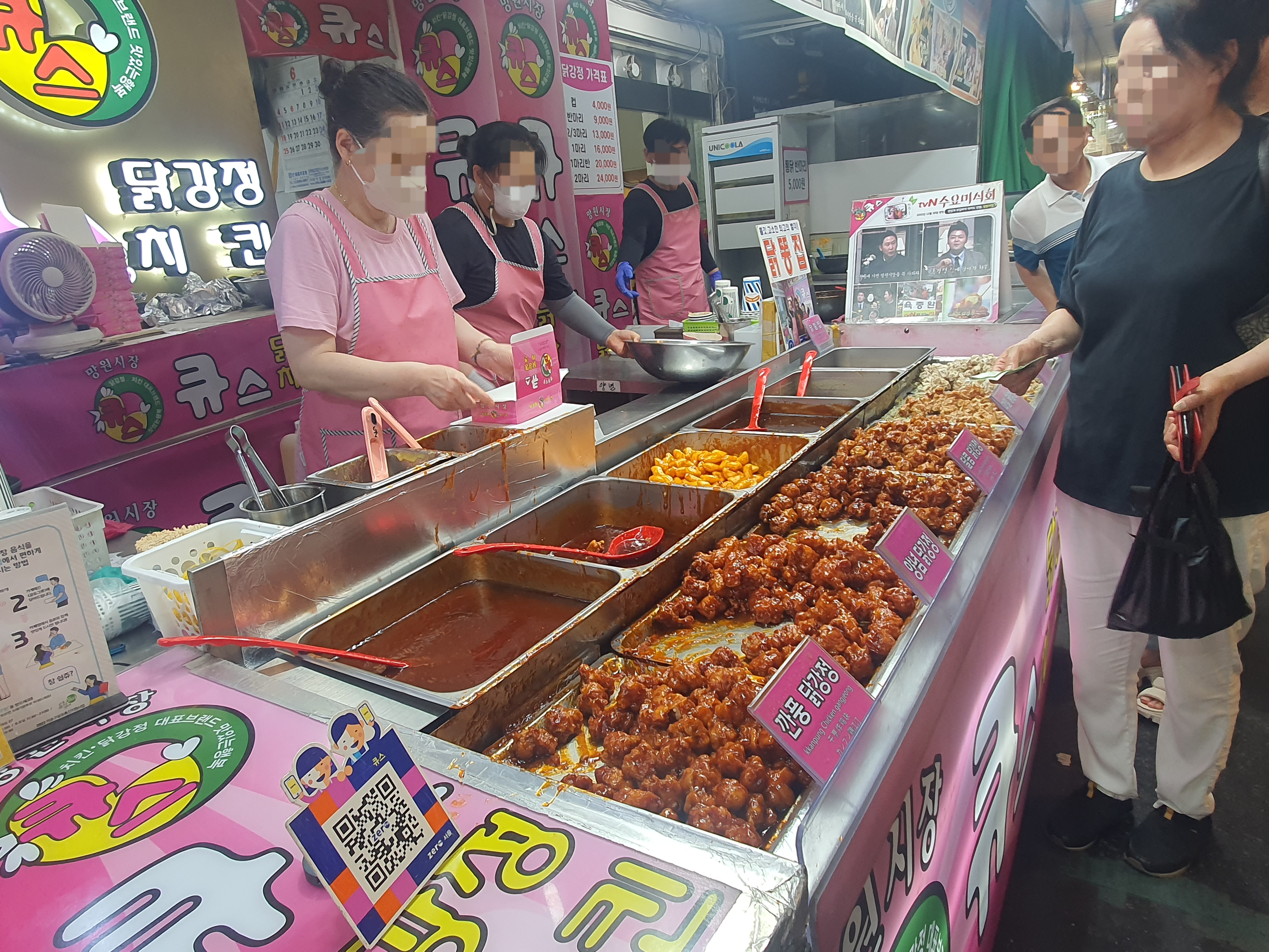 닭강정은 못참지. 깐풍닭강정 양념닭강정 달콤닭강정... 소스 종류대로 골라보자. 그나저나 닭강정 사려면 한참 줄서서 기다려야 할 듯.
