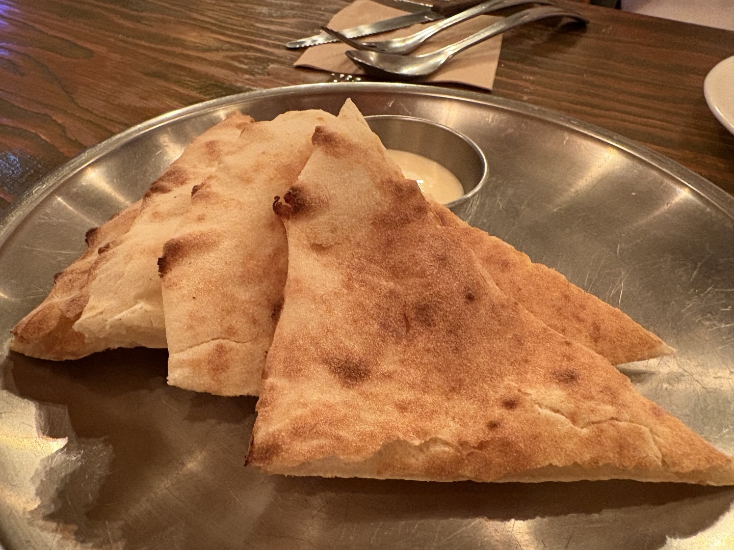 양고기 수블라키도 주문했어요. 처음 나왔던 식전빵과 동일한 화덕에 구운 빵이 곁들여져요.