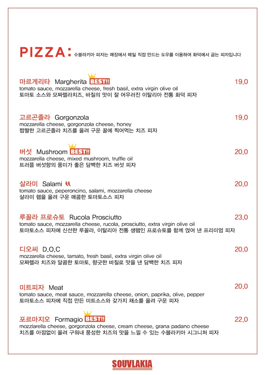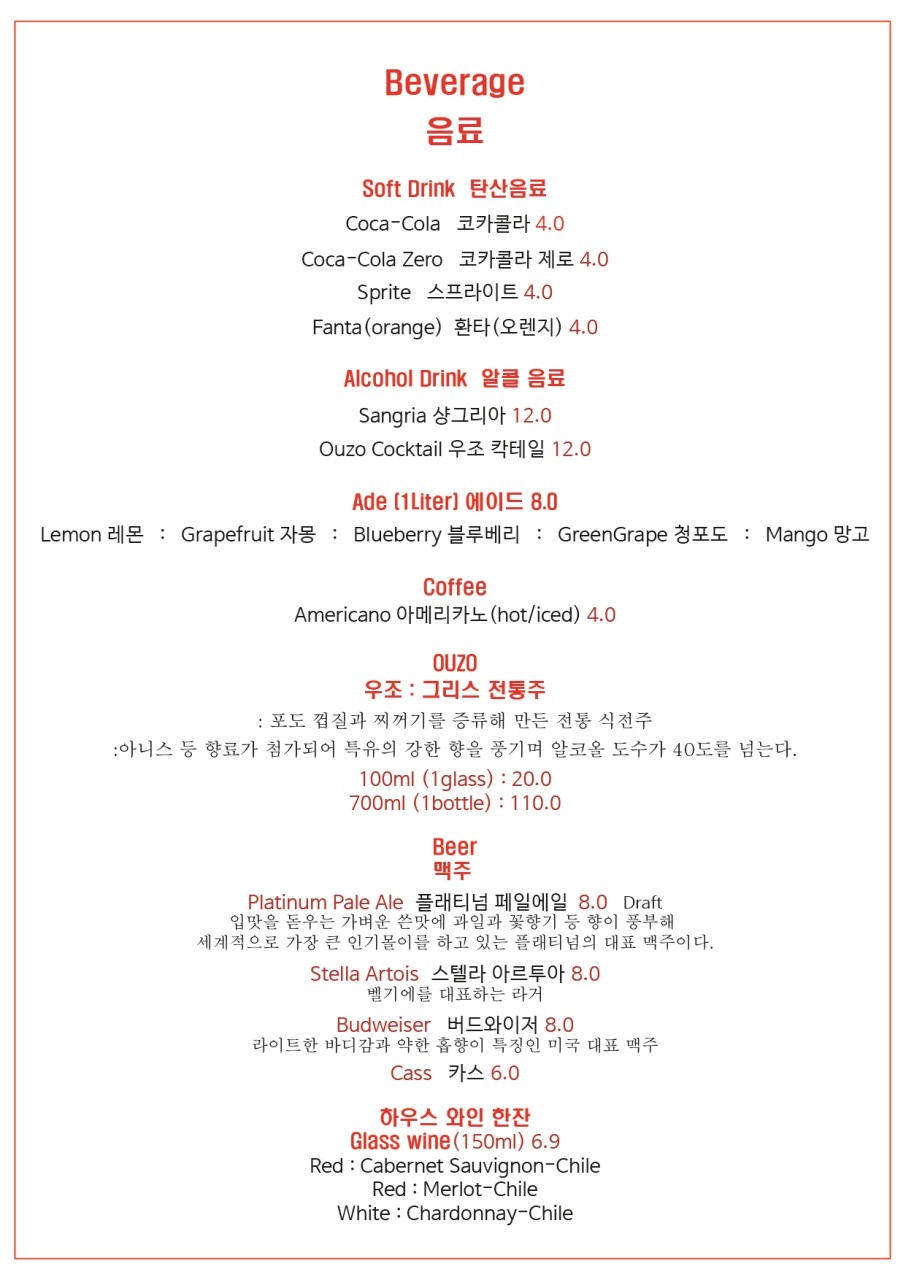 그리스음식이 메인이지만, 이탈리안 음식도 곁들일 수 있어서 각자 선호도에 맞게 여러 음식을 주문해서 함께 즐길 수 있을 것입니다.
