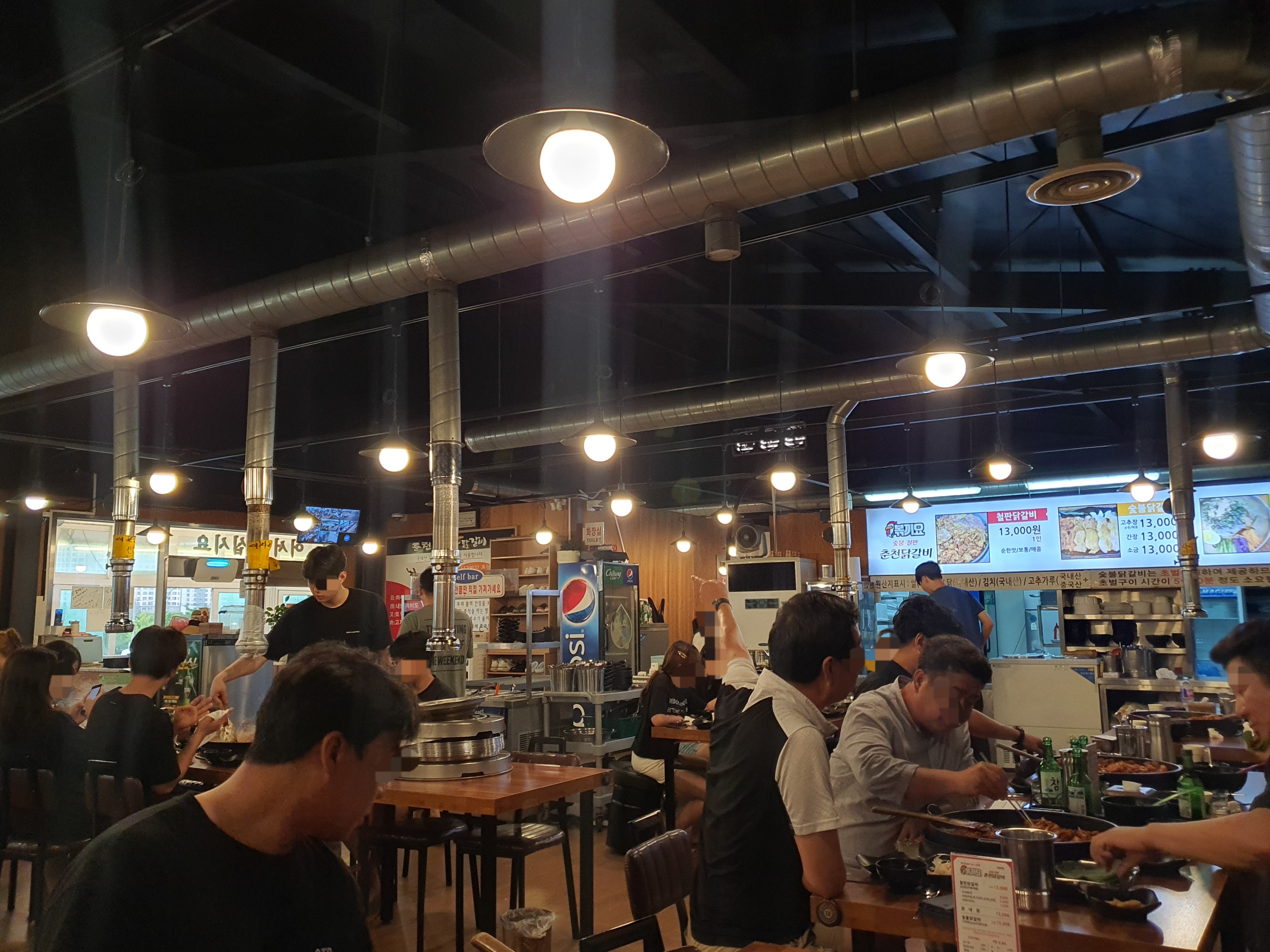 안동에서 닭갈비라니. 좀 의아하신가요? 저도 방문하기 전에는 안동에서 닭갈비라니 꽤 생경한 조합이라고 생각했습니다. 그런데??? 일단 문을 열고 들어서니 분위기가 꽤 좋습니다. 술 한잔하기에도 좋고 지인들과 식사자리로도 어울려요. 이곳저곳에서 지글지글 맛있게 익어가는 소리들이 들립니다. 옆테이블을 보니, 닭갈비용 아주 큰 불판이 중앙에 위치해있고 불판 가득 닭갈비와 채소들이 올려져있어요. 굉장히 먹음직스럽군요.